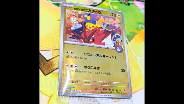 そしてこちらが、『ヒロシマのピカチュウ』のプロモカード!!ポケモンセンターの特別ロゴが入った、限定感のある1枚だね