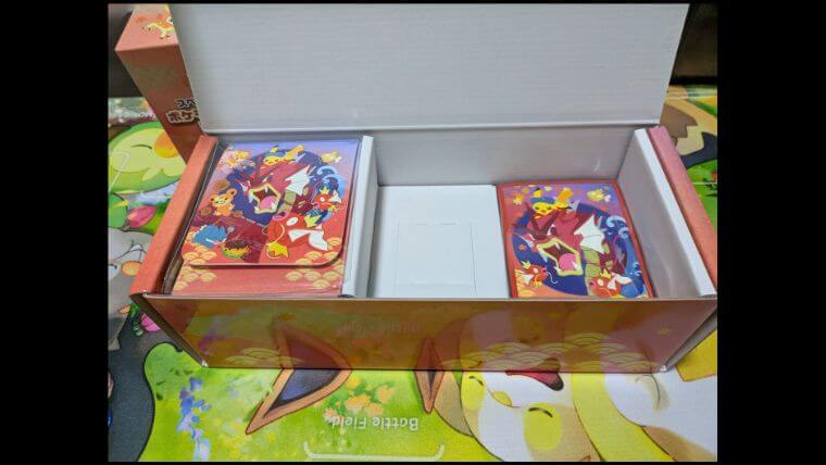 次はデッキシールド!ピカチュウと赤いギャラドスが目立つデザインで、かなり可愛いね