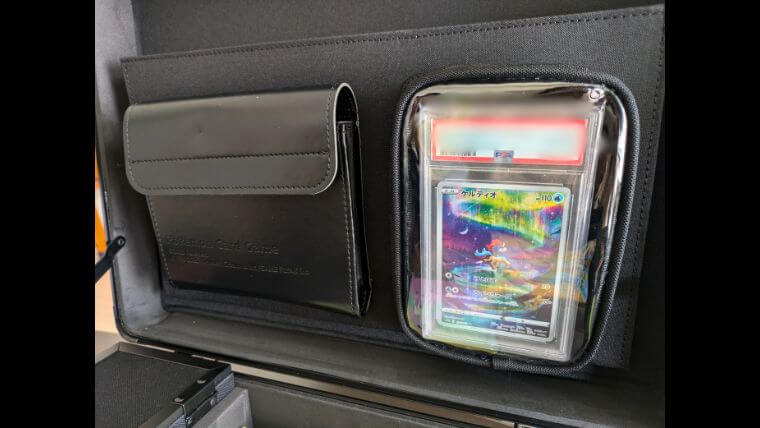 ケースを開けたときにお気に入りカードが目に入るデザインは最高ね♪PSAカードも収納できるサイズ感だから、ローダー入りの通常カードも余裕で入るおススメの収納スペースです